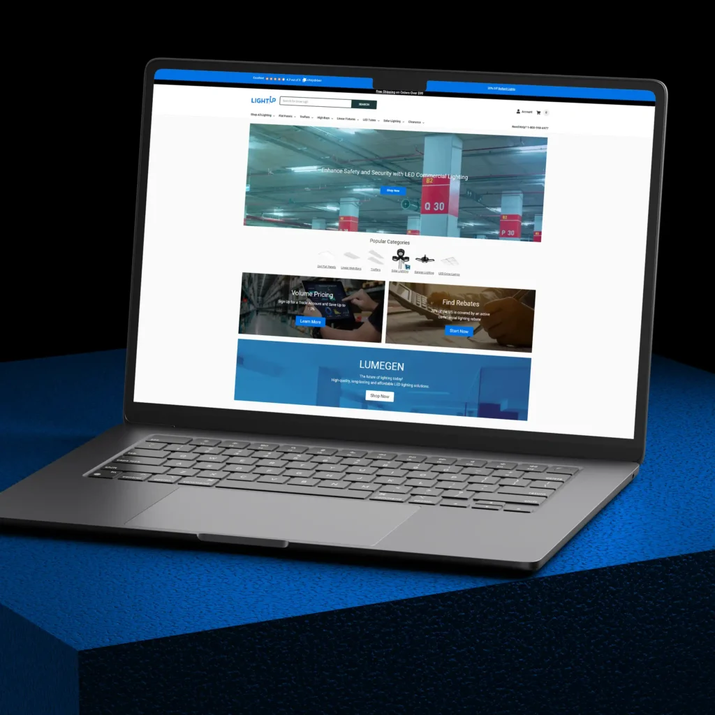 We proudly completed a full redesign of the LightUp website, a leading provider of LED commercial lighting solutions. The newly optimized platform delivers a modern user experience, featuring streamlined navigation and expanded product categories such as Flat Panels, High Bays, Solar Lighting, and more.