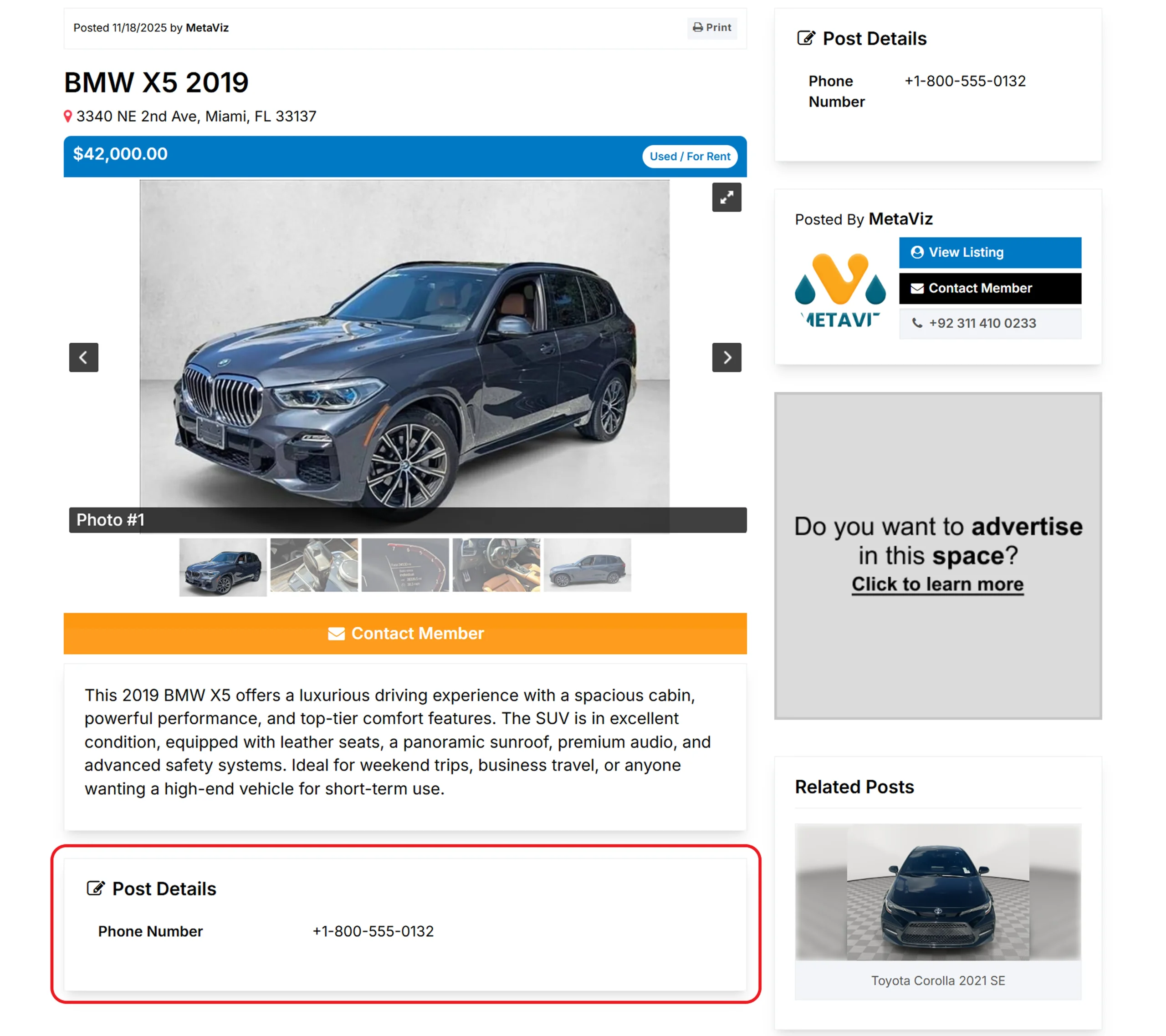 Once a member fills out the custom fields, the system dynamically displays them, ensuring posts show complete and accurate information.