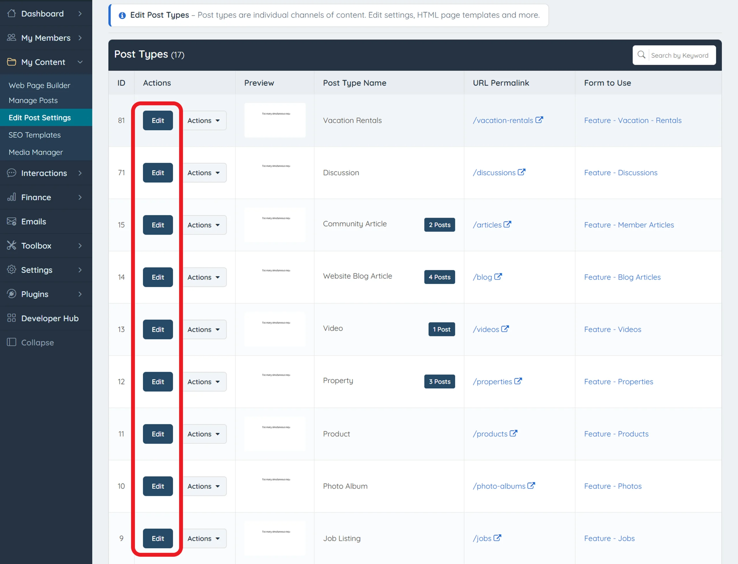 How to Identify and Edit Post Type Sidebars in Brilliant Directories