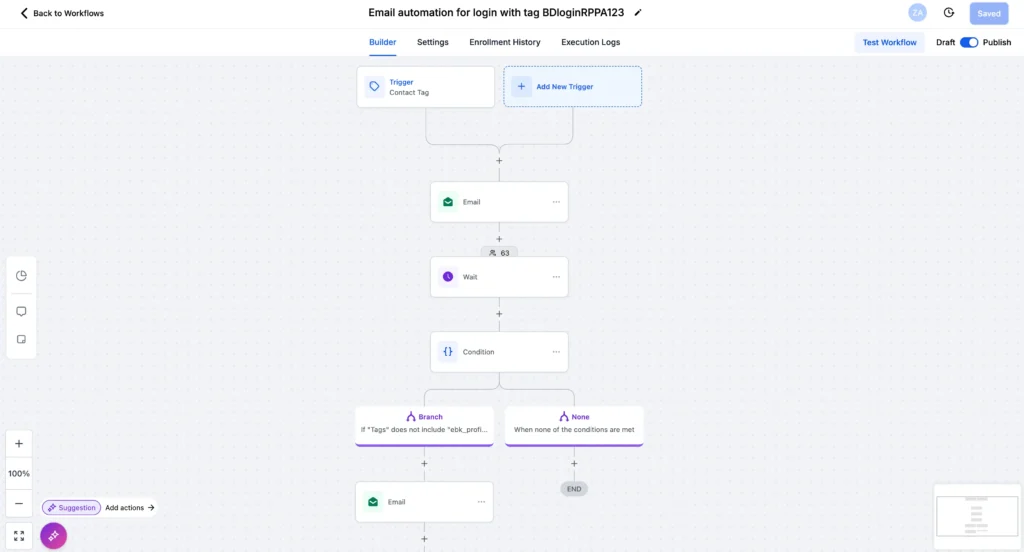 We began by mapping the end-to-end user registration journey and identifying the integration points between Go High Level and the third-party directory platform. Using custom webhook actions inside GHL, we ensured smooth data handoff. After account creation, we implemented a brief delay to ensure timing consistency before triggering the email sequence. The email templates were personalized with dynamic fields for each user’s credentials. Final tests were conducted to ensure data accuracy, webhook response reliability, and successful credential delivery.